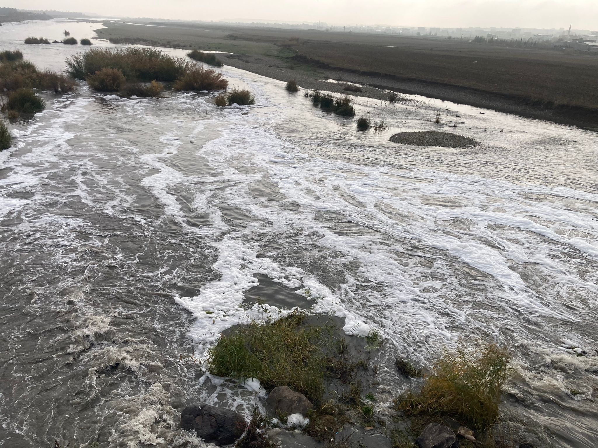 Diyarbakır’ın Bismil ilçesinde, Dicle Nehri’nin ilçe girişindeki köprü çevresinde nehir yüzeyinde oluşan köpüklenme nedeniyle şikayetler arttı. Nehirdeki köpüklenmeyi inceleyen Biyoçeşitlilik ve Çevre Uzmanı Prof. Dr. Ahmet Kılıç, Dicle Nehri’nin hem bölge hem de ülke açısından büyük öneme sahip olduğunu belirtti.